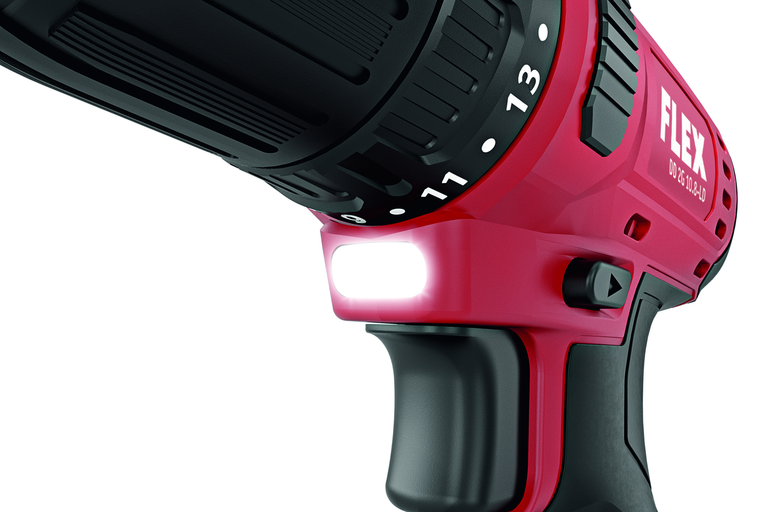 FLEX DD 2G 10.8-LD Elektronik yönetim sistemi (EMS) makineyi korur ömrünü uzatır ve verimliliği artırır kilitleme fonksiyonu ile Hızlandırıcı tetik anahtarı Elektronik çabuk etkili fren Otomatik kilit fonksiyonu ile Hızlı kelepçe ayna emniyet mandalı ile Sağ / sol dönüş Ergonomik tasarımlı, kaymaz, yumuşak kavrama kolu kalıcılık fonksiyonu ile Entegre LED lamba LED akü kapasitesi göstergesi kemer klipsi ve bit depolama dahil kolay delme ve vidalama uygulamaları için kullanışlı bir araç.