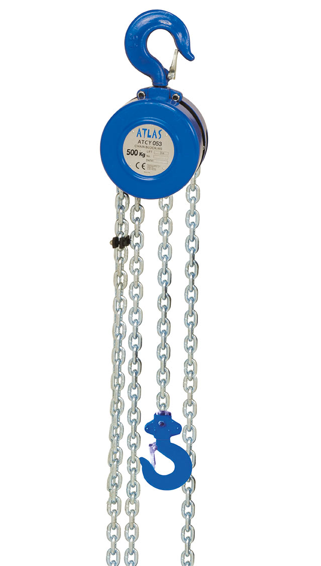 ATLAS HS Serisi Yuvarlakzincirli caraskallar ev, bahçe, atölye, servis ve her yerde fiziksel zorlanma olmadan kolayca yüklerin kaldırılması için basit, kullanışlı bir yardımcıdır.Atlas ATCY 053 model ceraskal 500 kg yük taşıma kapasiteli 3 metre zincir uzunluğuna sahiptir. Atlas ceraskal vinclerde bulunan HS serisi uzun operatör zinciri ve ince tasarımı ile, yüksek tavanlı kapalı alanlarda optimal kullanım avantajı sunar. Atlas ceraskalın kapalı metal gövdesi kasnağı korur ve düşük-dirençle çalışmasını sağlar. Oldukça emniyetli olan Atlas ceraskal vinçlerdeki emniyet mandalı yükün yanlışlıkla düşmesini engeller. Sağlam yapılı gövdenin yanısıra oldukça sağlam galvanize cincir sayesinde ceraskal vincin kullanımında sorun yaşanmaz.