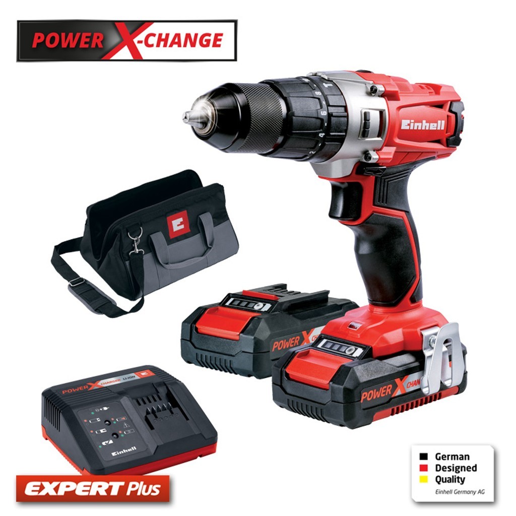 Einhell TE-CD 18-2 Li-i Kit Power X-Change ailesinin darbeli delme fonksiyonuna sahip güçlü, sağlam ve ergonomik bir ürünüdür. 1500 mAh çift akü ve hızlı şarj cihazına ilave olarak taşıma ve saklama çantası pakete dahildir. Led aydınlatma, 13 mm metal mandren ve çift vites özellikleri bulunmaktadır.