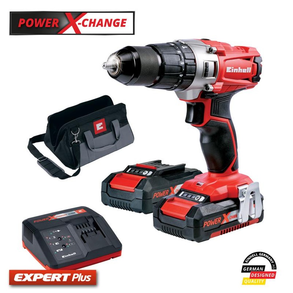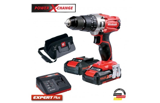 Einhell TE-CD 18-2 Li-i Kit Power X-Change ailesinin darbeli delme fonksiyonuna sahip güçlü, sağlam ve ergonomik bir ürünüdür. 1500 mAh çift akü ve hızlı şarj cihazına ilave olarak taşıma ve saklama çantası pakete dahildir. Led aydınlatma, 13 mm metal mandren ve çift vites özellikleri bulunmaktadır.
