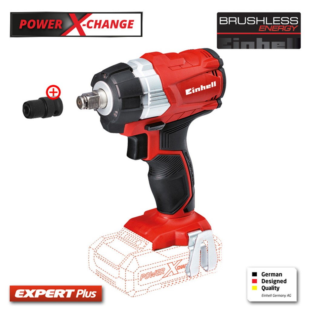 Einhell TE-CW 18 Li BL - Solo Akülü Darbeli Somun Sıkma Power X-Change ailesinin güçlü, sağlam ve ergonomik bir ürünüdür. Kömürsüz motoru ile 215 Nm'lik yüksek tork gücü değeri sunar. Mandren bölümünde yeralan 3'lü led aydınlatma ile çalışma yapılan alanda verimli aydınlatma sağlar.