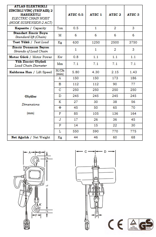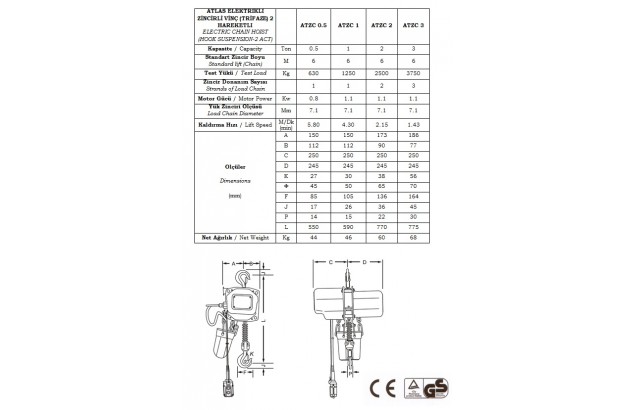 ELEKTRİKLİ ZİNCİRLİ VİNÇLER - ATLAS VİNÇ ATZC 2